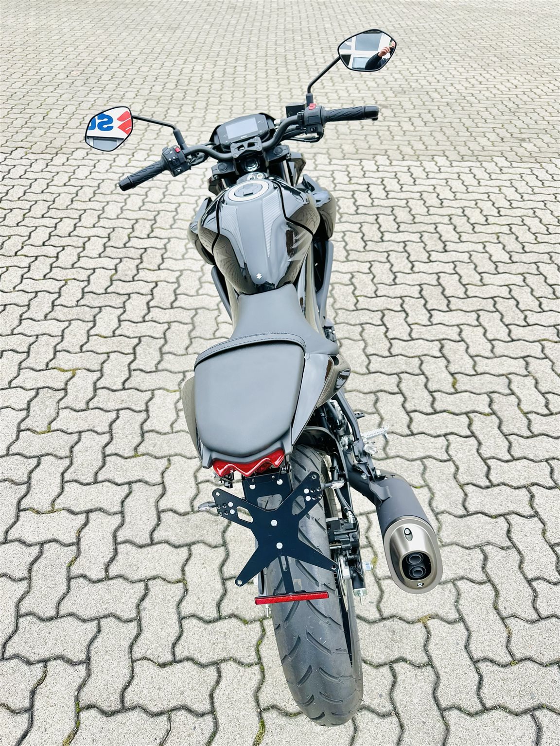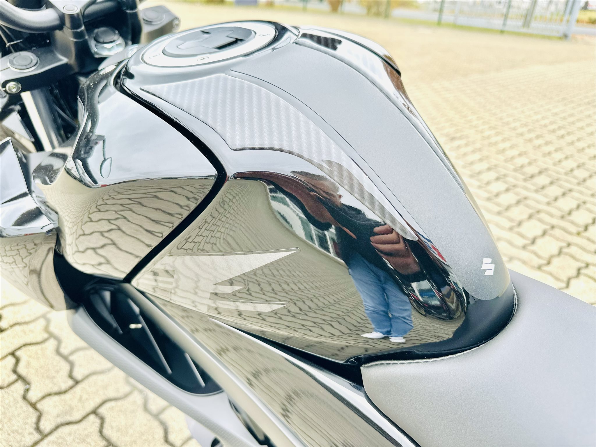 Die GSX-S ist mit einem Heckumbau inkl. 2LED-Miniblinkern und Suzuki-Tankpad ausgestattet.